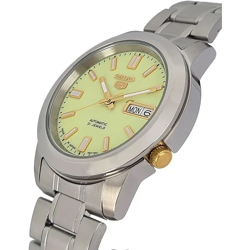 Elevate your wrist game with the Seiko 5 SNKK19J1. This isn’t just a watch; it’s a powerful embodiment of style and precision. With its 21-jewel Japanese automatic movement, it’s not just a timepiece; it’s a testament to your commitment to excellence. The watch’s classic design is a timeless statement of sophistication and reliability. Crafted with the utmost precision and care, it effortlessly combines form and function. The elegant green dial is perfectly complemented by the stainless steel band, creating a look that’s both bold and timeless. The Seiko 5 SNKK19J1 is more than a watch; it’s a statement of your personality, an expression of your individuality, and a symbol of your impeccable taste. This is your opportunity to seize a timepiece that’s as unique as you are. Don’t settle for the ordinary; embrace the extraordinary with this exceptional watch. Make every moment count with the Seiko 5 SNKK19J1 on your wrist. Your journey to elevated style starts here.