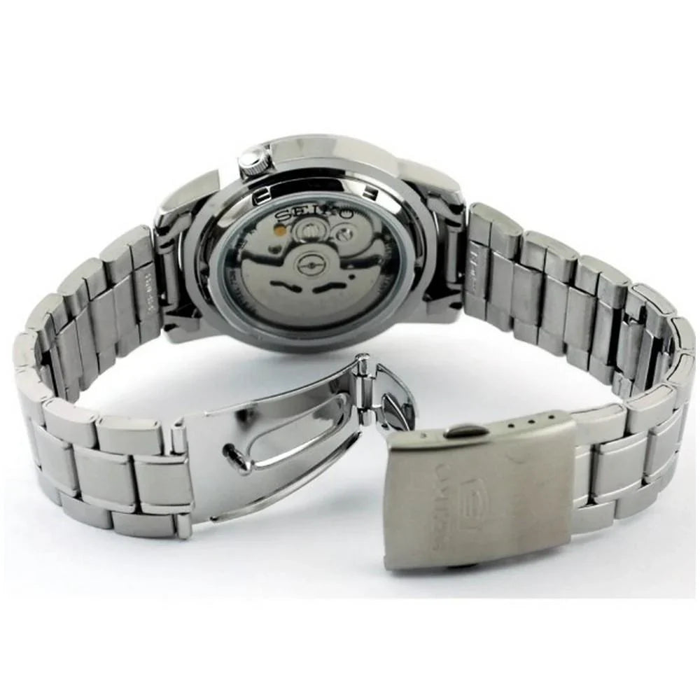 Its automatic movement, powered by Seiko’s trusted 7S26 caliber, ensures reliable timekeeping without the need for batteries. The solid stainless steel bracelet is secured with a fold-over clasp and double push-button safety, offering both security and ease of wear.