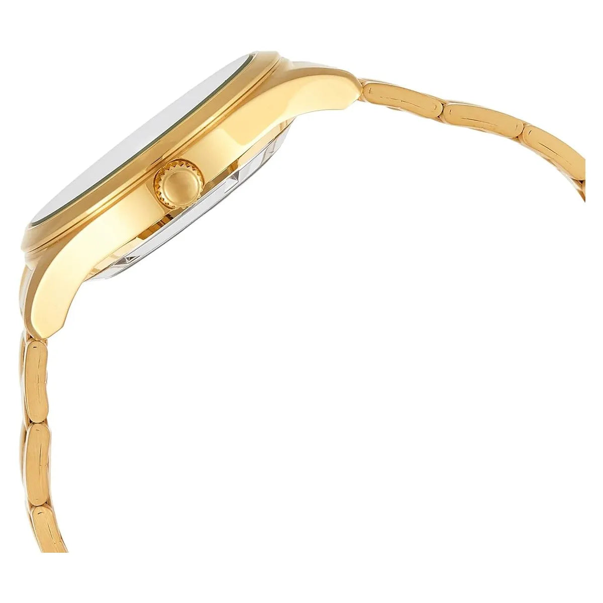 The SNKN96J1 features a radiant gold sunburst dial that immediately draws attention, framed by a polished stainless steel case measuring 43.5mm in diameter. Gold-tone hands and indices create a warm contrast, offering a luxurious feel without being overstated. The watch is powered by Seiko’s reliable 7S26 automatic movement, with a day-date complication neatly positioned at 3 o'clock for everyday practicality.