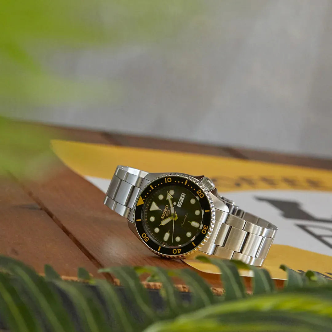 Step into the extraordinary with the Seiko SRPD57, a watch that transcends timekeeping and becomes a testament to your unique style. Crafted with precision, this timepiece is not just an accessory; it’s a statement of sophistication and individuality. The sleek stainless steel case embraces a bold design that captures attention effortlessly. The rich black dial, adorned with luminescent markers, not only ensures legibility but adds an air of mystery and elegance to your wrist. Powered by Seiko’s renowned automatic movement, the SRPD57 is more than a watch; it’s a reliable companion that keeps pace with your dynamic lifestyle. No need for batteries – it thrives on the kinetic energy of your every move. Dive into the allure of this watch’s water resistance up to 100 meters. It’s not just a timepiece; it’s a resilient partner, ready to accompany you on every adventure. Why settle for ordinary when the Seiko SRPD57 beckons you to embrace the extraordinary? Elevate your style, command attention, and seize every moment with a timepiece that is as unique as you are. Own the Seiko SRPD57 – where craftsmanship meets charisma. Don’t just tell time; make it unforgettable.