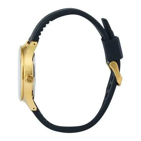 The SUR560P1 features a radiant gold-tone stainless steel case and black silicone strap that create a luxurious yet understated presence on the wrist. Its minimalistic black dial is beautifully accented with gold indices and hands, offering a clean and classy finish. The 40mm case provides a modern fit that suits both formal and business casual attire, while the flat Hardlex crystal adds durability without compromising on clarity.